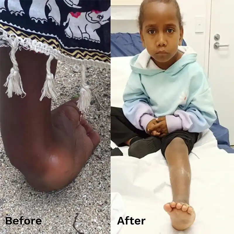 In partnership with ROMAC, JDF was able to fund a life-changing surgery for Elina, a young girl from Vanuatu. After years of waiting due to COVID delays, Elina finally traveled to Melbourne for surgery to correct her severe club foot through the ROMAC program.